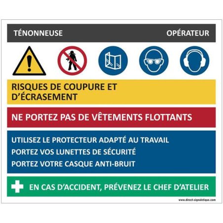 Fiche sécurité tenonneuse – H 210 x L 300 mm – Alu dibond 3 mm