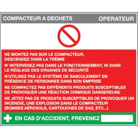 Fiche sécurité compacteur à déchets – H 210 x L 300 mm – Alu dibond 3 mm