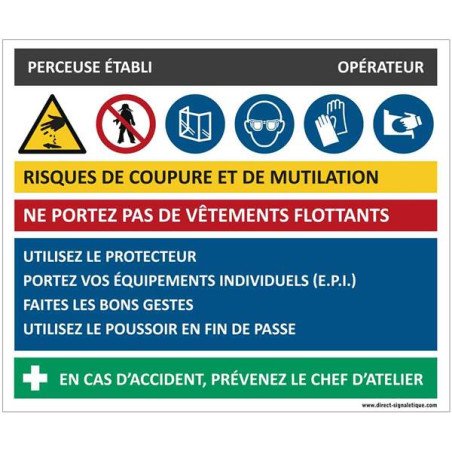 Fiche sécurité perçeuse établi – H 210 x L 300 mm – Alu dibond 3 mm