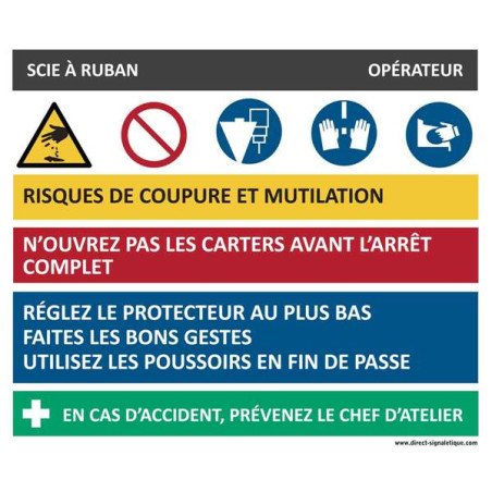 Fiche sécurité scie à ruban – H 210 x L 300 mm – Alu dibond 3 mm