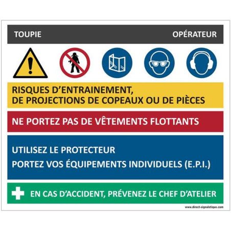 Fiche sécurité toupie – H 210 x L 300 mm – Alu dibond 3 mm